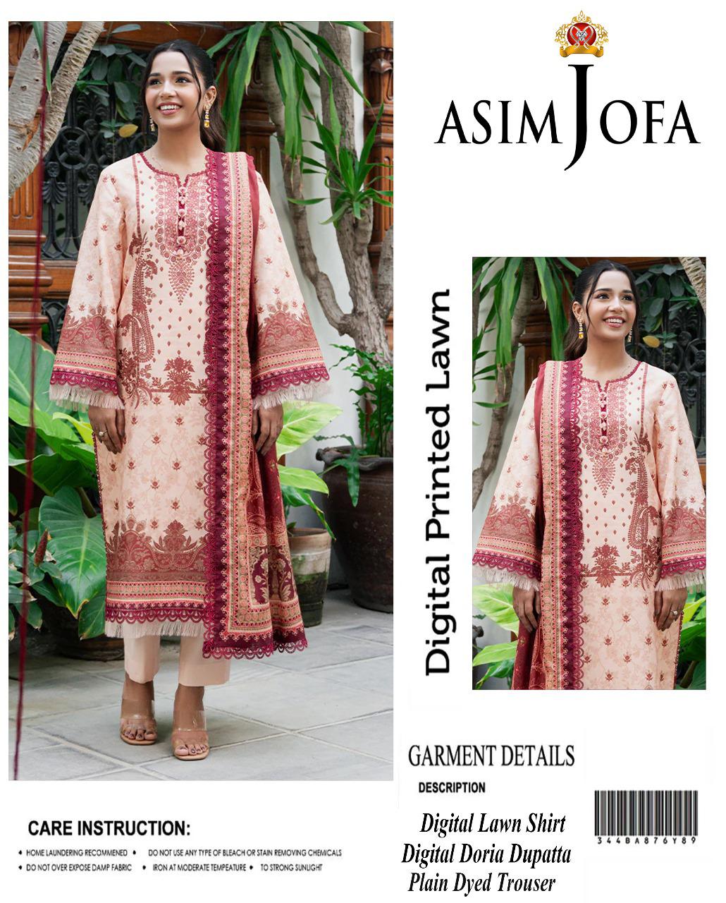 ✨ Premium 3-Piece *Asim Jofa Digital Print Embroidered Lawn Suit* ✨