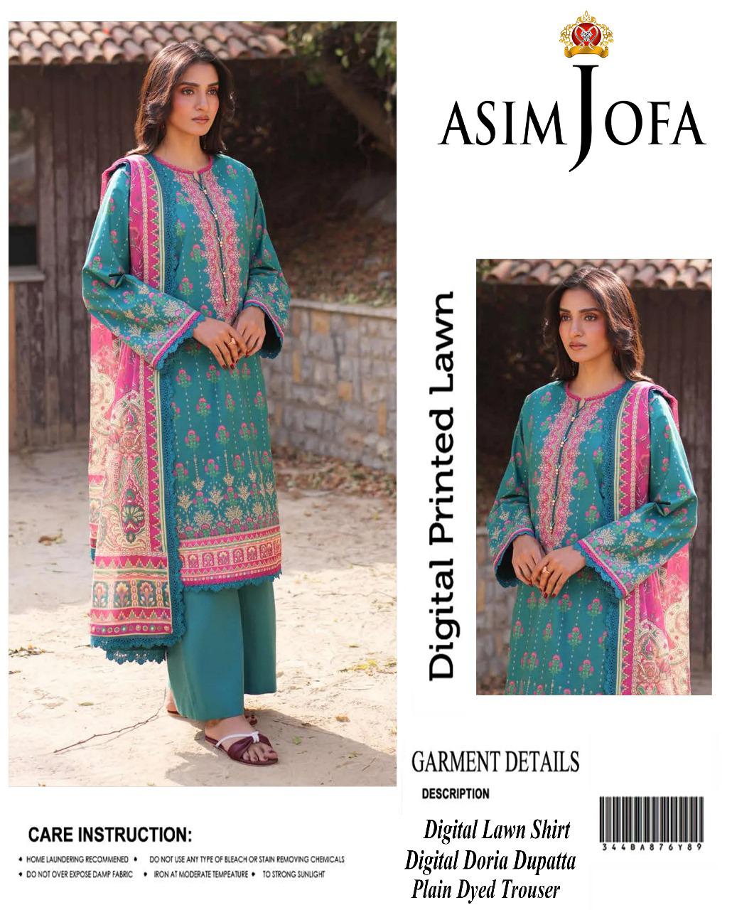 ✨ Premium 3-Piece *Asim Jofa Digital Print Embroidered Lawn Suit* ✨
