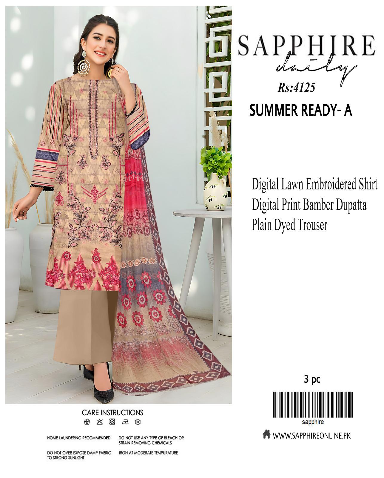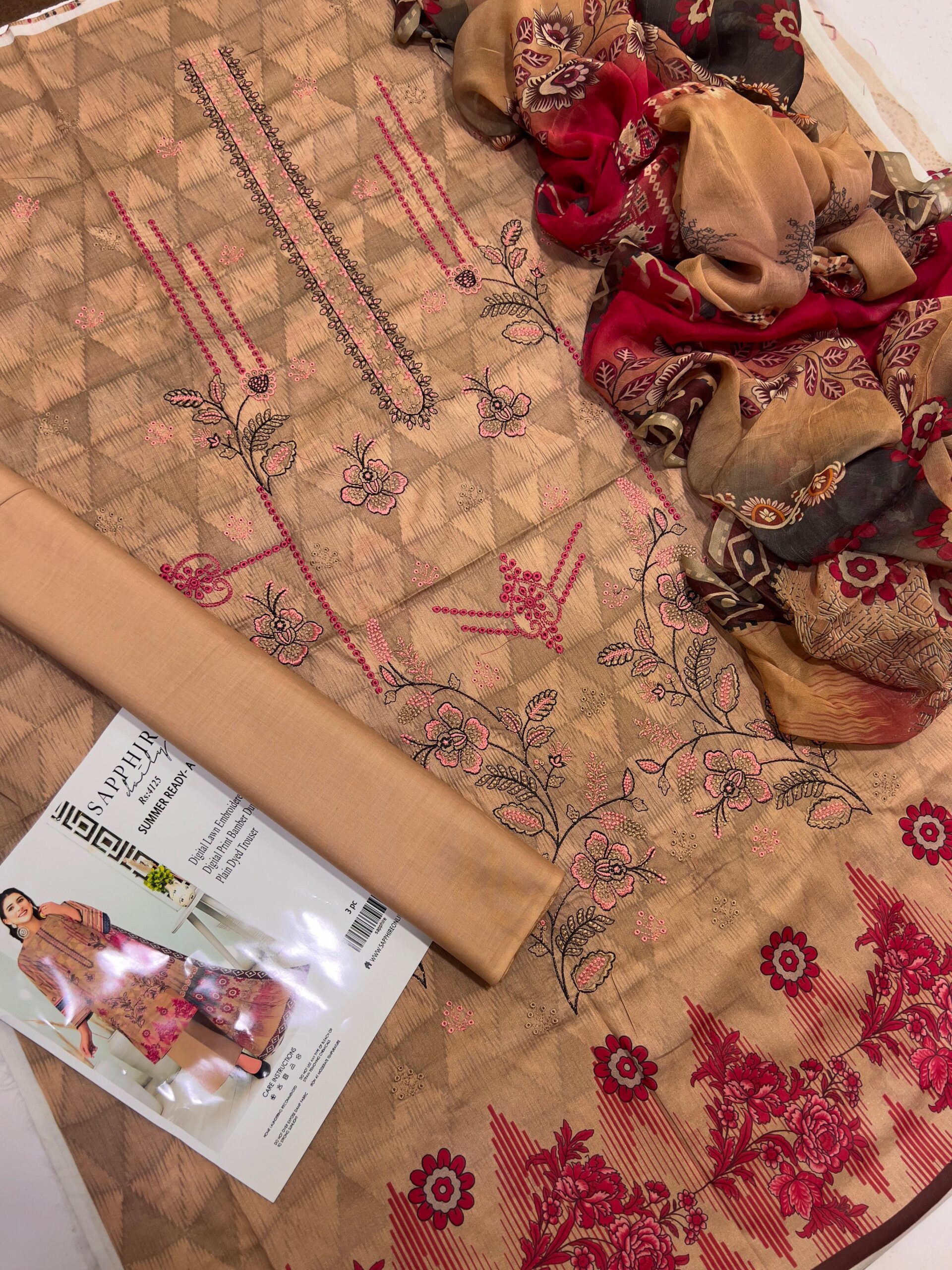 Premium 3-Piece Sapphire Digital Print Embroidered Lawn Suit